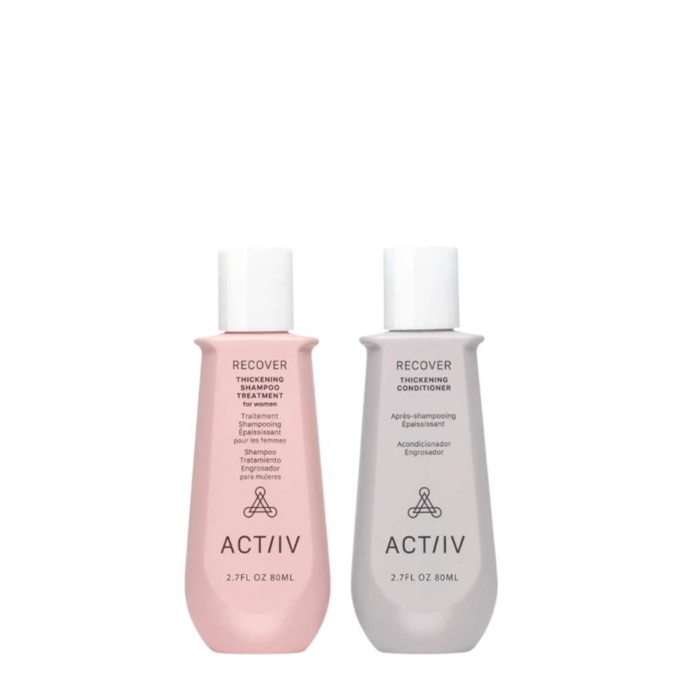 Le shampoing et le revitalisant traitement épaississant "Recover" d'Actiiv Hair Science est une solution méticuleusement conçue pour améliorer visiblement la densité des cheveux, ce qui donne une apparence plus épaisse et plus complète en seulement 90 jours. Spécialement formulée pour les femmes, la collection "Recover" favorise des cheveux plus denses et un cuir chevelu sain en nettoyant naturellement les follicules pileux de la DHT, la cause n°1 de la chute des cheveux. Il s'utilise tous les deux jours à la place de votre shampoing et revitalisant habituel et ne prend que 5 minutes pour agir.