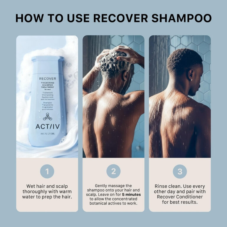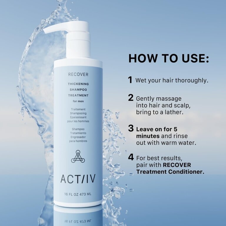 Le shampoing traitement épaississant pour homme "Recover" d'Actiiv Hair Science est une solution méticuleusement conçue pour améliorer visiblement la densité des cheveux, ce qui donne une apparence plus épaisse et plus complète en seulement 90 jours.