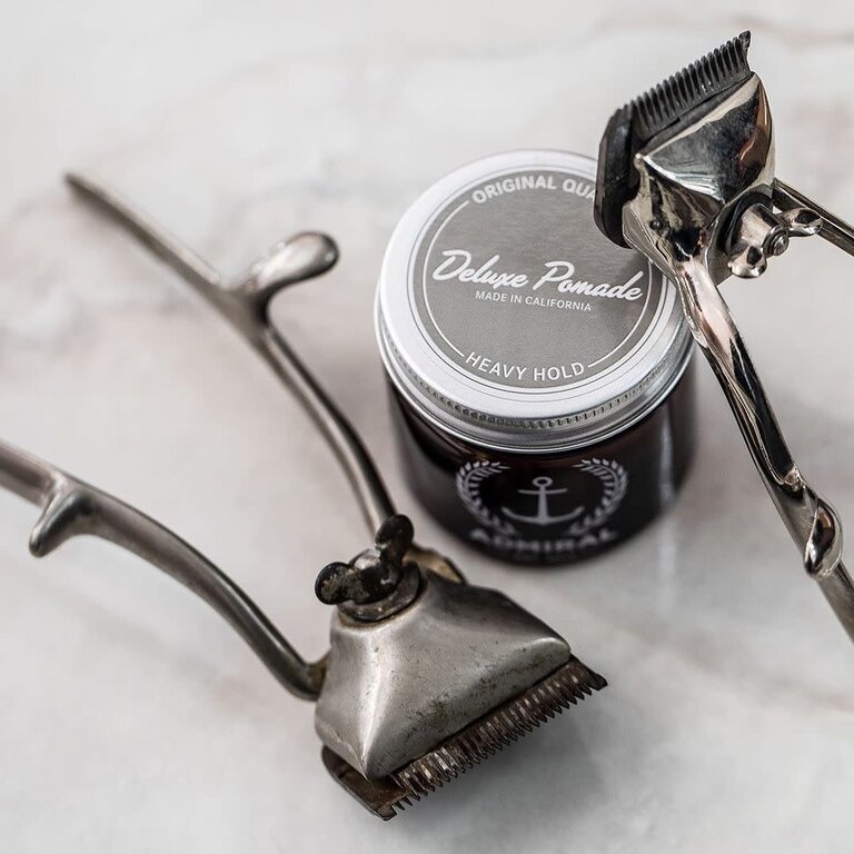 Le dernier né d'Admiral, la "Deluxe Pomade" une pommade traditionnelle réinventée. Fabriquée avec du jus de feuille d'aloès, de l'huile de tournesol et notre infusion classique de cire d'abeille, cette pommade à base d'eau plus lourde qu'autrement porte à la fois le poids et la tenue pour le style le plus inventif.