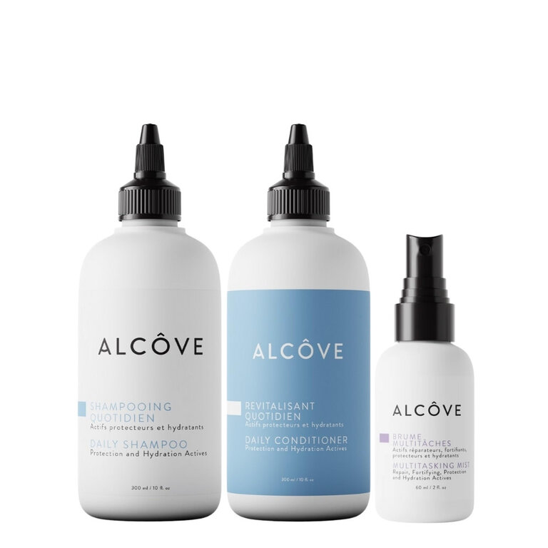 Saisissez l'essentiel de la beauté capillaire avec le trio quotidien "Daily Ritual" d'Alcôve. Cette routine experte en trois étapes cible l'hydratation et la protection parfaite pour tous les types de cheveux. Conçu pour un usage fréquent, il nettoie en douceur, démêle et conditionne, infusant chaque mèche d'une légèreté et d'une brillance saines.