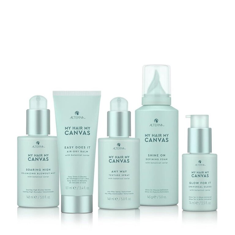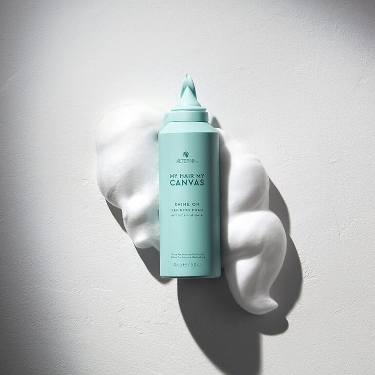 La mousse définition "Shine On" d'Alterna My Hair My Canavas améliore la douceur, la souplesse et la maniabilité globale des cheveux. Sa formule à base de caviar botanique, d'huile de figue de barbarie et de charbon blanc hydrate en profondeur la chevelure et combat les frisottis tout en ajoutant un maximum de brillance. Elle laisse les cheveux stylisés, lustrés et flexibles, de façon durable.