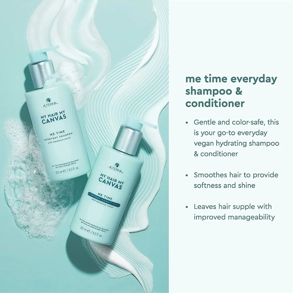 Le revitalisant quotidien "Me Time Everyday Conditioner" d'Alterna My Hair My Canvas est un après-shampoing hydratant végétalien doux qui améliore la brillance, ajoute de la douceur et optimise la maniabilité, conçue pour tous les types de cheveux. Sa formule enrichie d'extrait de nénuphar antioxydant aide à réparer les zones fragilisées tandis que sa composition au caviar botanique végétalien ajoute de la force, du lustre et nourrit chaque mèche pour des cheveux indéniablement beaux et sains. Sans danger pour les couleurs, il est votre incontournable au quotidien.