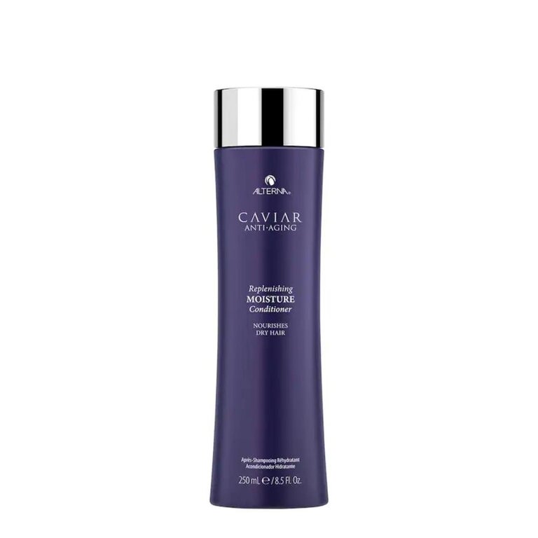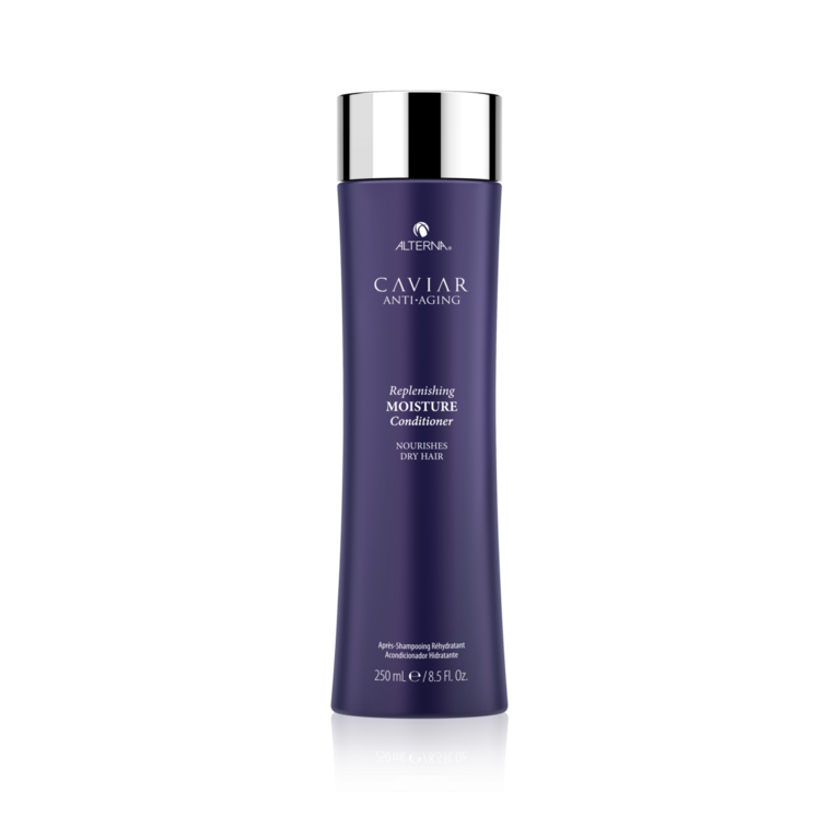 Le revitalisant réhydratant "Replenishing Moisture" d'Alterna démêle instantanément tout en protégeant les cheveux de la décoloration, des dommages futurs et du stress quotidien pour atténuer visiblement les signes de vieillissement capillaire, dès la première utilisation. Sa formule enrichie d'extrait de caviar pur non menacé et de la technologie "Seasilk" est riche en acides gras oméga-3, en minéraux, en protéine et en vitamine A,C et D. Inspiré par les soins de la peau, cette combinaison d'ingrédient actif luxueux permet de cibler les signes naturels, chimiques, thermiques et physiques du vieillissement et du stress qui peuvent faire vieillir l'apparence de la chevelure et diminuer l'hydratation, laissant les cheveux secs et cassants.