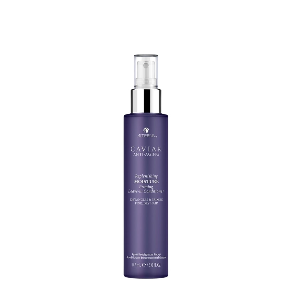 Le revitalisant léger sans rinçage "Replenishing Moisture Priming" d'Alterna est un spray démêlant formulé d'un complexe de restauration de l'hydratation, pour démêler et préparer au coiffage les cheveux fins et secs. Il fournit une protection thermique jusqu'à 450°F/232°C et une barrière contre l'humidité, procurant un contrôle des frisottis et une rétention de la coiffure jusqu'à 72 heures. Sa formule enrichie d'extrait de caviar pur non menacé et de la technologie "Seasilk" est riche en acides gras oméga-3, en minéraux, en protéine et en vitamine A,C et D et d'huile de rose musquée. Inspiré par les soins de la peau, cette combinaison d'ingrédient actif luxueux permet de cibler les signes naturels, chimiques, thermiques et physiques du vieillissement et du stress qui peuvent faire vieillir l'apparence de la chevelure et diminuer l'hydratation, laissant les cheveux secs et cassants.