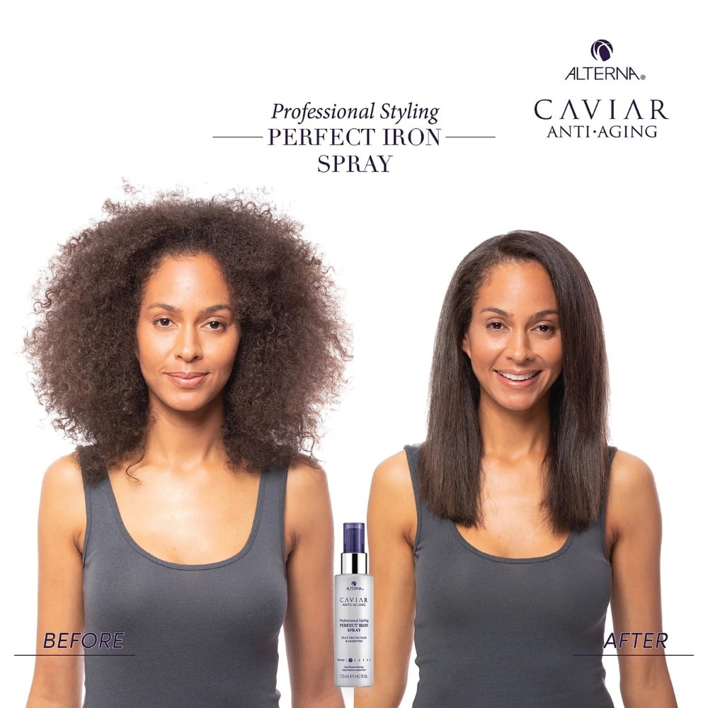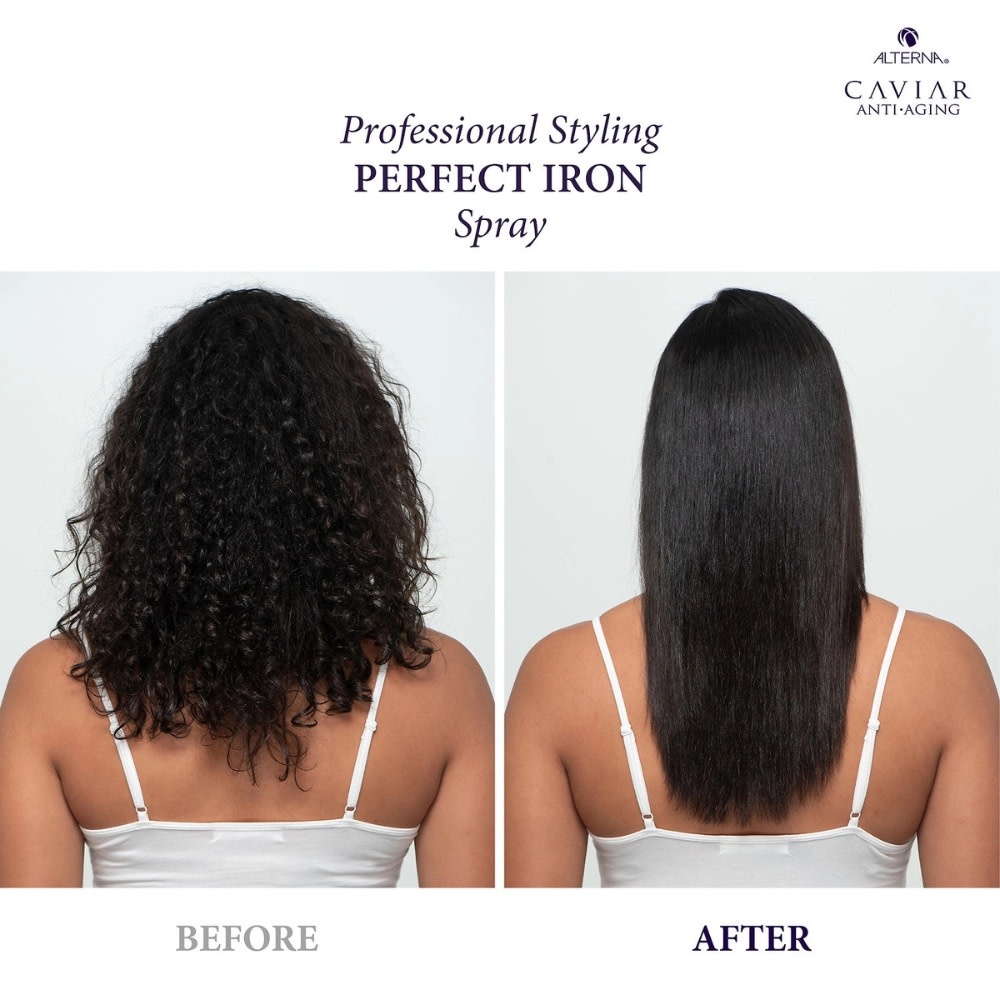 Le Spray thermo-protecteur "Perfect Iron Spray" d'Alterna procure une défense ultime contre la chaleur des outils chauffants, jusqu'à 450°F/232°C. Activé par la chaleur, il scelle l'hydratation et lisse les cuticules pour éliminer les frisottis et les pointes fourchues tout en bloquant l'humidité indésirable. Une fois terminée, sa formule haut de gamme empêche la réversion de la coiffure, pour des mèches lisses ou bouclées qui durent et se prolongent enfin.