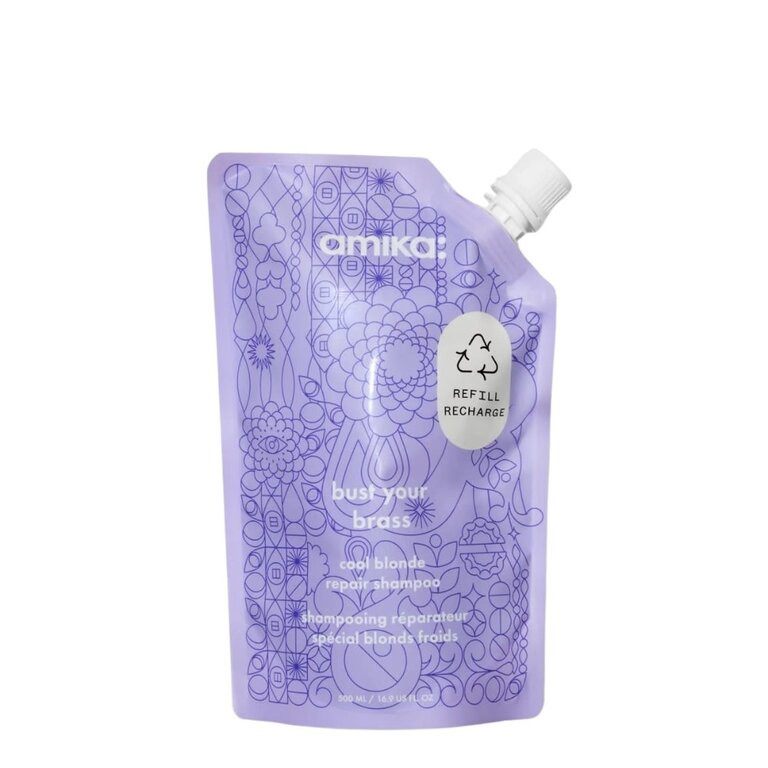 Voici le secret le mieux gardé des blondes. Le shampoing ultra-violet "Bust your Brass" d'Amika, nettoie et neutralise les tons cuivrés indésirables qui s'accumulent et ternissent les cheveux clairs, tout en offrant 86% de réparation en plus, 55% de casse en moins et des cheveux plus forts, plus lumineux et d'apparence plus saine.