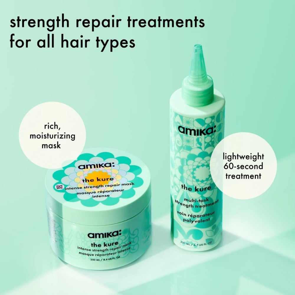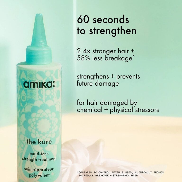 Le traitement réparateur multi-tâche "The Kure" d'Amika est un traitement cliniquement prouvé pour renforcer les cheveux, réduire la casse et prévenir les dommages futurs que pourraient subir vos cheveux.
