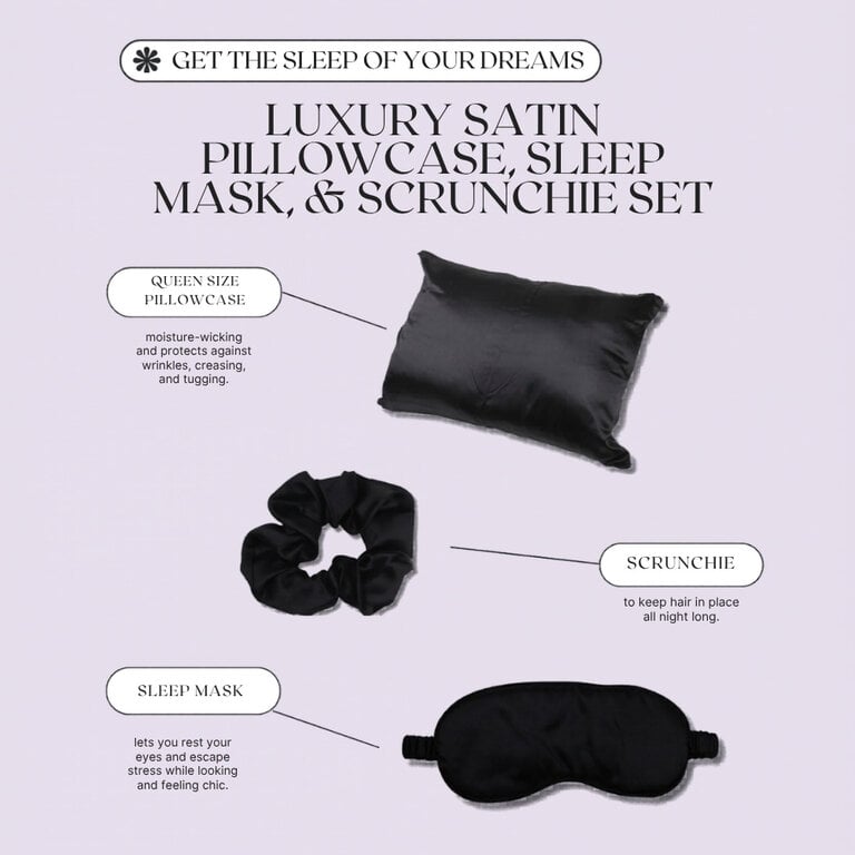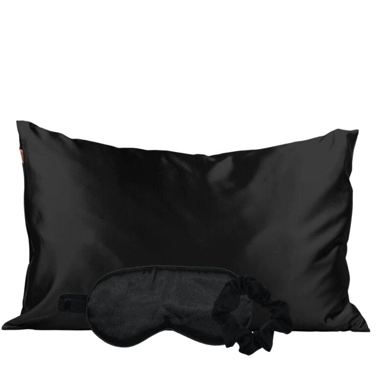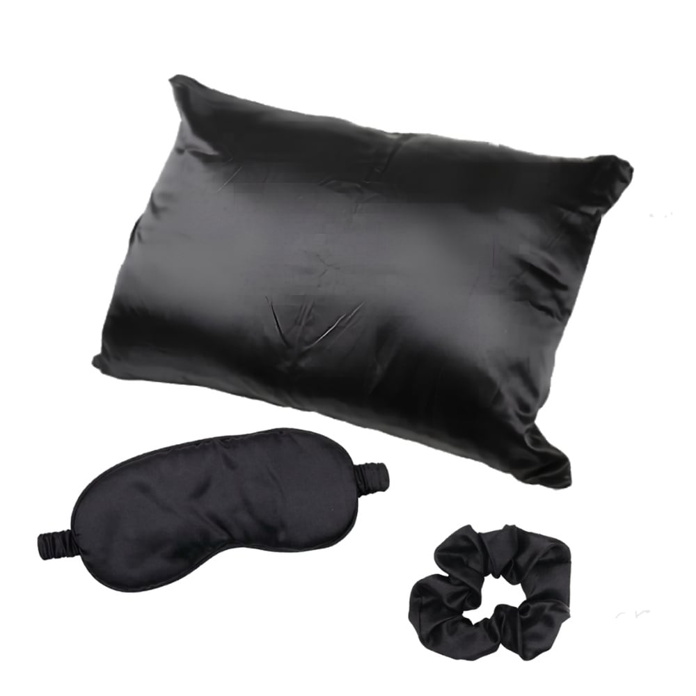 S'inscrireTrio de nuit en satin "Satin Sleep Set" avec taie d'oreiller, masque pour les yeux et chouchou - Noir