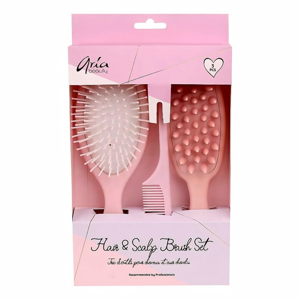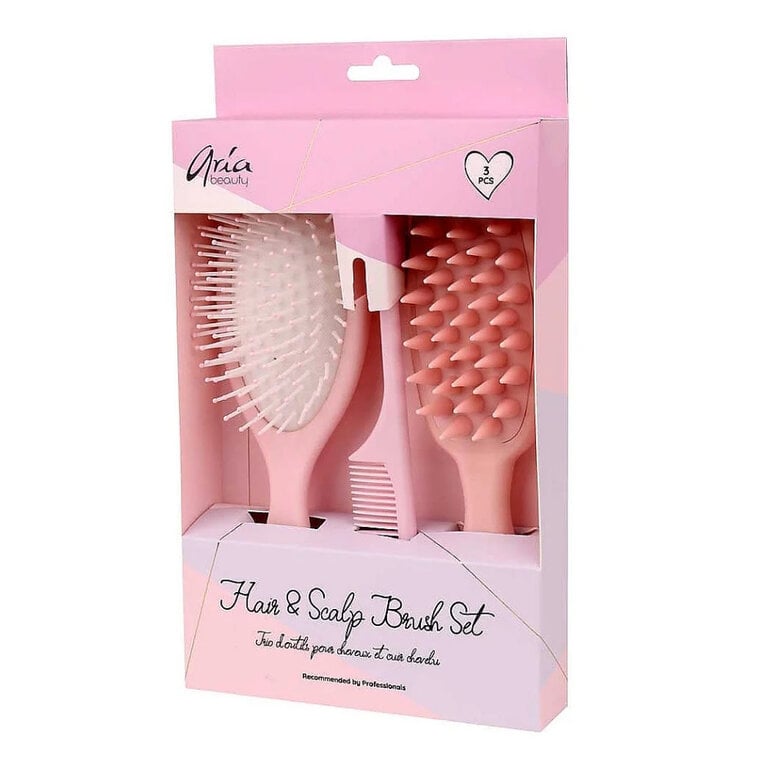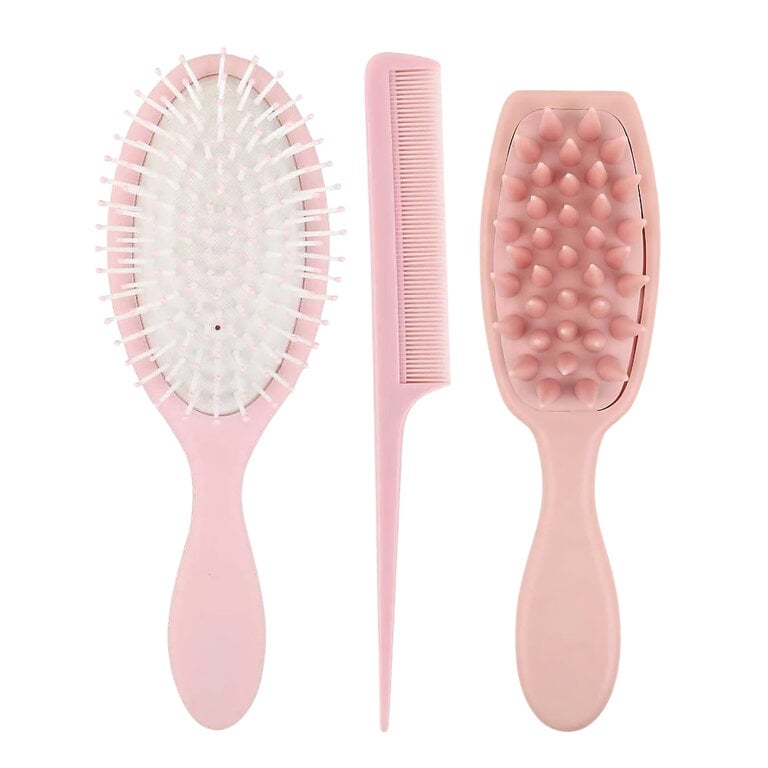 Évaluer Trio d'outils pour cheveux et cuir chevelu "Hair & Scalp Brush Set" brosse à démêler, brosse pour cuir chevelu et peigne à queue - Rose