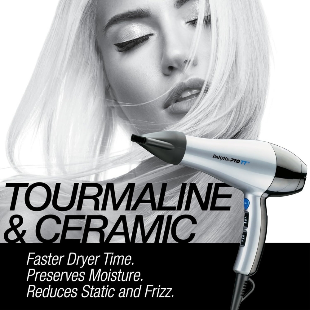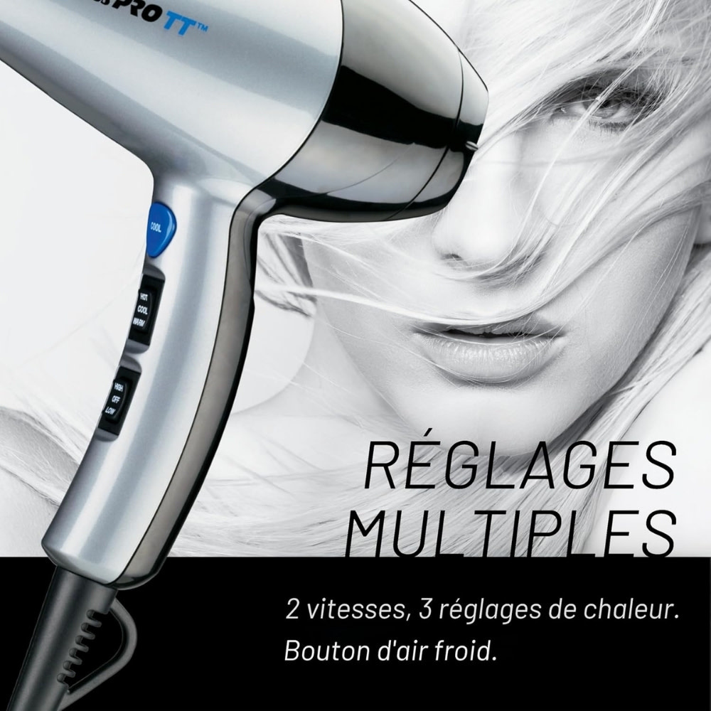 Le séchoir TT de BaByliss PRO est conçu pour offrir un séchage constant et performant à la maison. L'alliance de la céramique et de la tourmaline assure une diffusion uniforme de la chaleur pour protéger la fibre capillaire et apporter plus de brillance. Doté d'un moteur de 1875 watts, ce séchoir classique est muni de réglages de chaleur et de vitesse personnalisables, en faisant un choix logique et durable pour toute la famille.