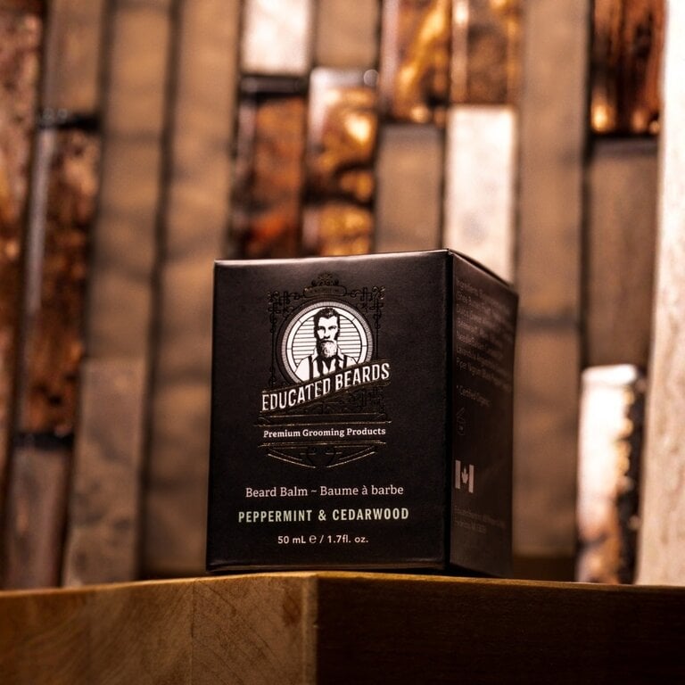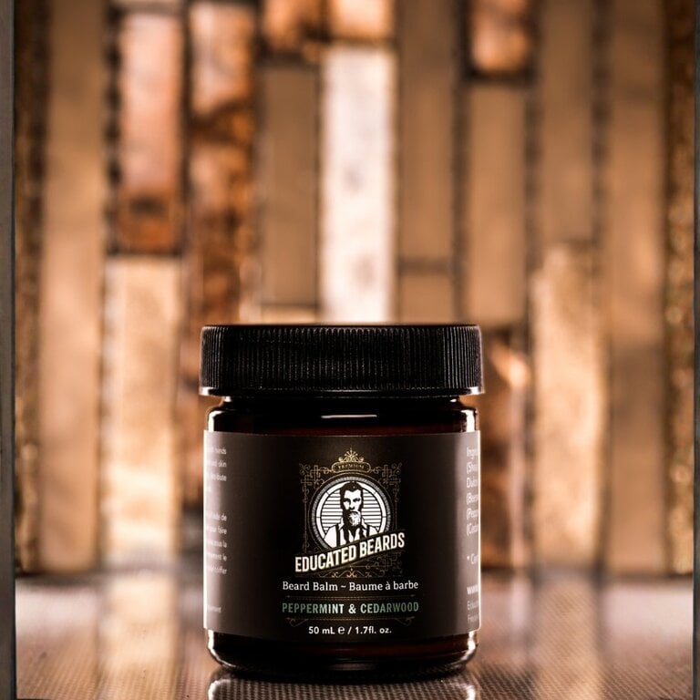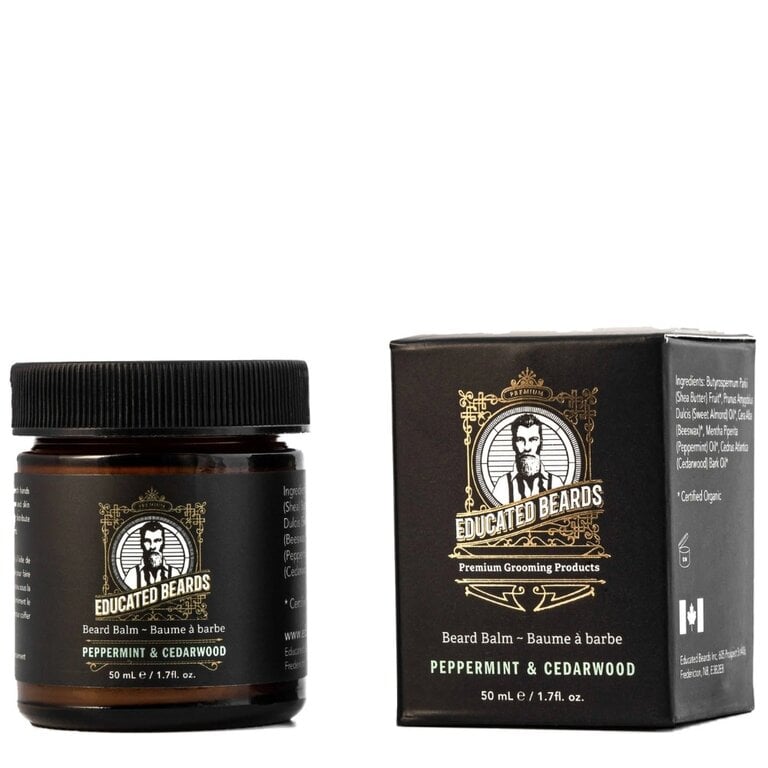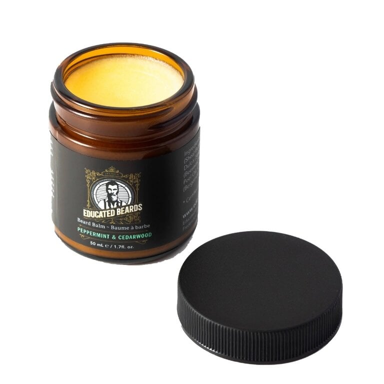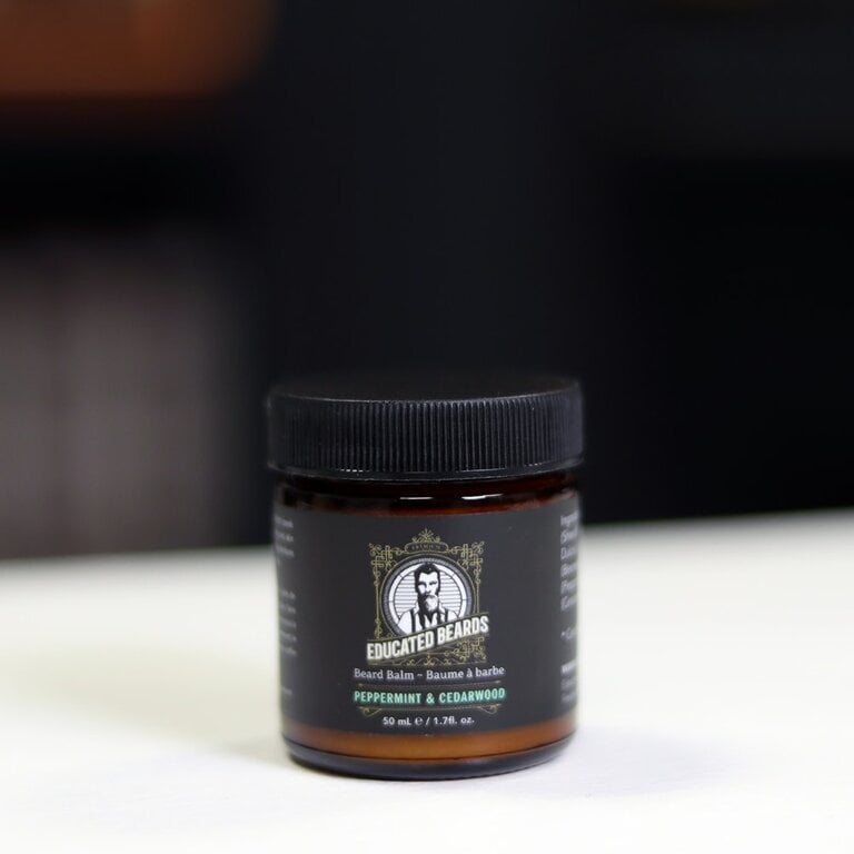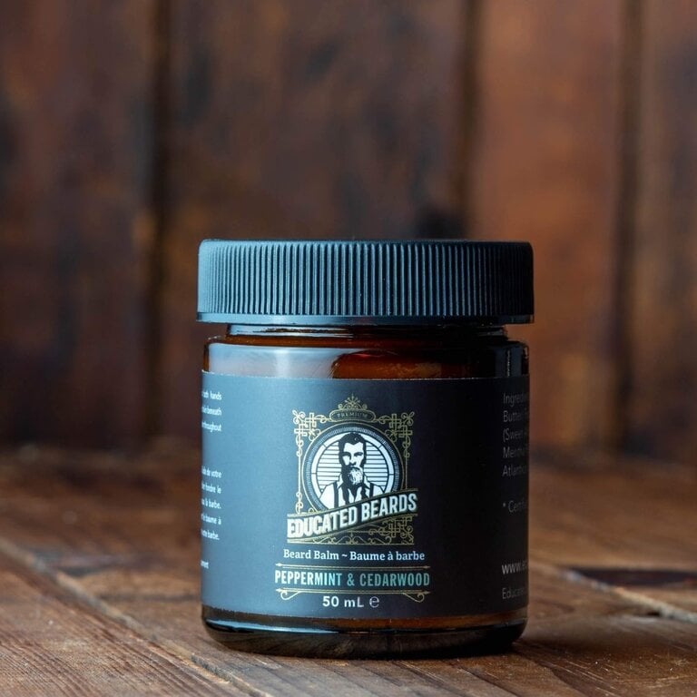 Soyez le patron de votre barbe avec le baume à barbe "Peppermint Cedarwood" de Educated Beards. Utilisez ce baume pour apprivoiser et dresser même la barbe la plus rebelle. Fournit une tenue confortable et donne du poids aux moustaches voyous. Il scelle la cuticule des cheveux et reconstitue les huiles perdues.