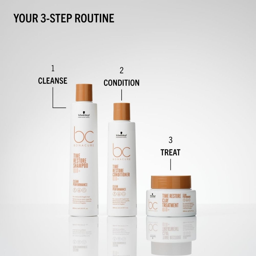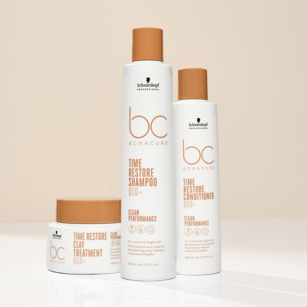 Les cheveux matures nécessitent un soin spécifique, car la production naturelle de kératine, leur constituant essentiel, ralentit avec l'âge. Afin de revitaliser les fibres fragilisées et ternies, Schwarzkopf Professional propose le masque "Time Restore Q10+" de la gamme Bonacure.