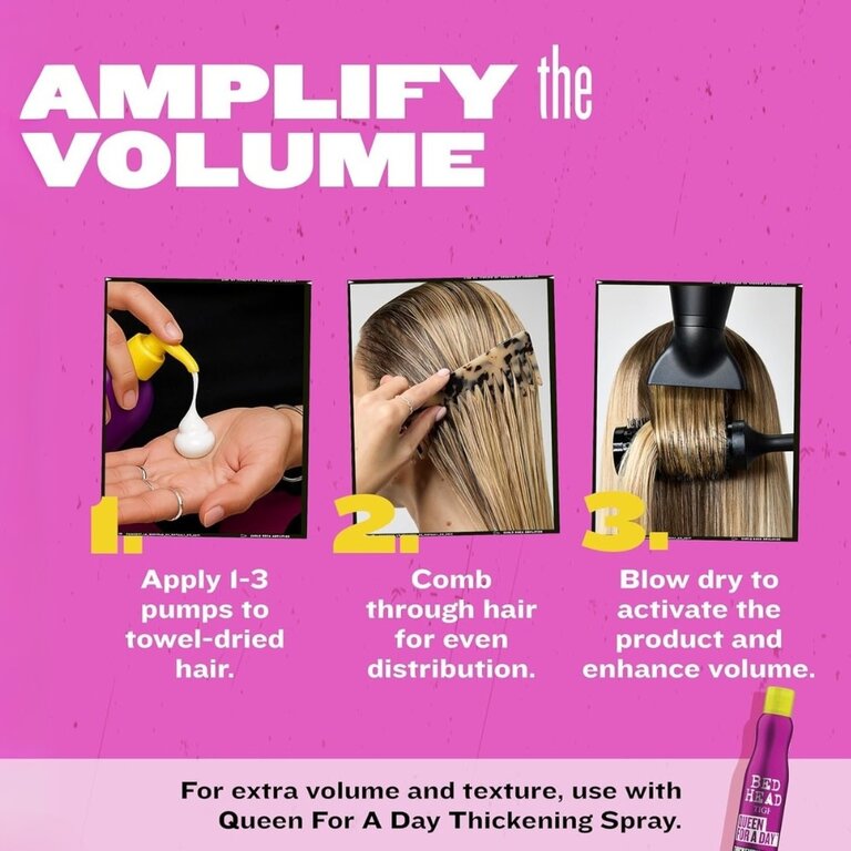 - Une structure rehaussée et un volume amplifié pour des coiffures texturées, volumineuses et sans frisottis.