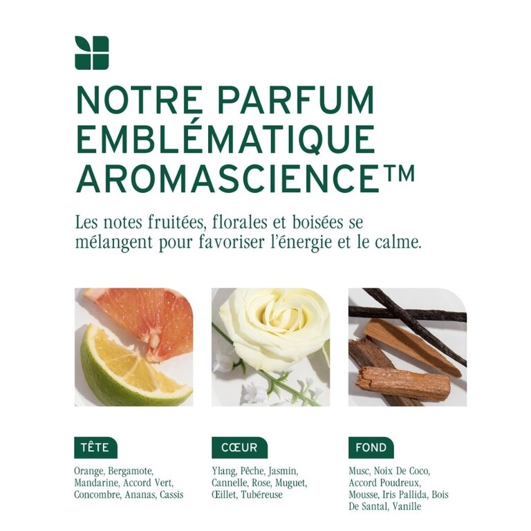 Inspiré des principes de l'aromathérapie classique, ses notes fruitées, florales et boisées se mélangent pour favoriser l'énergie et le calme.