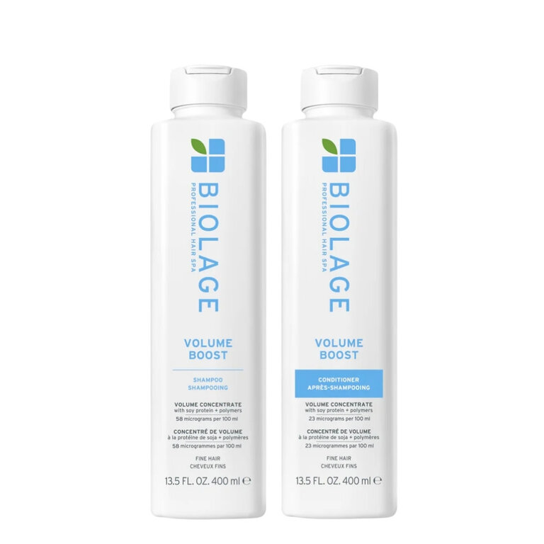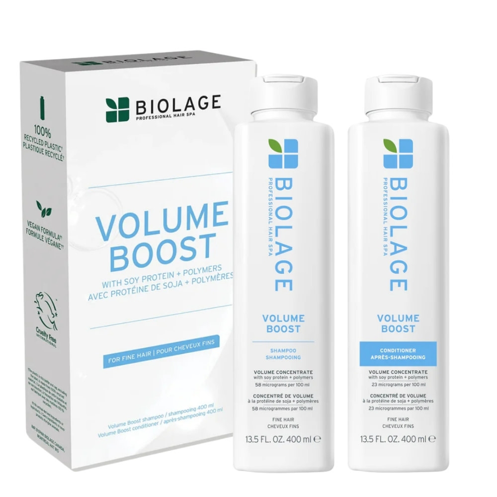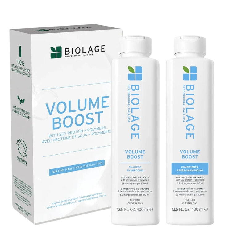 Découvrez le potentiel insoupçonné de vos cheveux fins grâce au duo volume "Volume Boost" de Biolage Professional. Ce rituel beauté tire parti de la synergie entre des protéines de soja microdosées, qui agissent en profondeur pour fortifier et épaissir la tige capillaire, ainsi que des polymères spécifiques qui créent un gonflant visible, assurant un volume optimisé et durable.