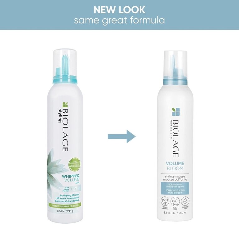La mousse coiffante "Volume Bloom" de Biolage est spécialement conçue pour apporter du corps, du contrôle et une brillance naturelle aux cheveux, tout en les laissant doux et souples. Sa formule fouettée et crémeuse, enrichie en nectar d'agave bleu, aide à renforcer et à réparer les cheveux fragilisés en retenant l'hydratation et les nutriments essentiels. Cette mousse volumisante à tenue moyenne est parfaite pour sculpter un volume naturel et durable, tout en préservant la légèreté et le rebond des cheveux.