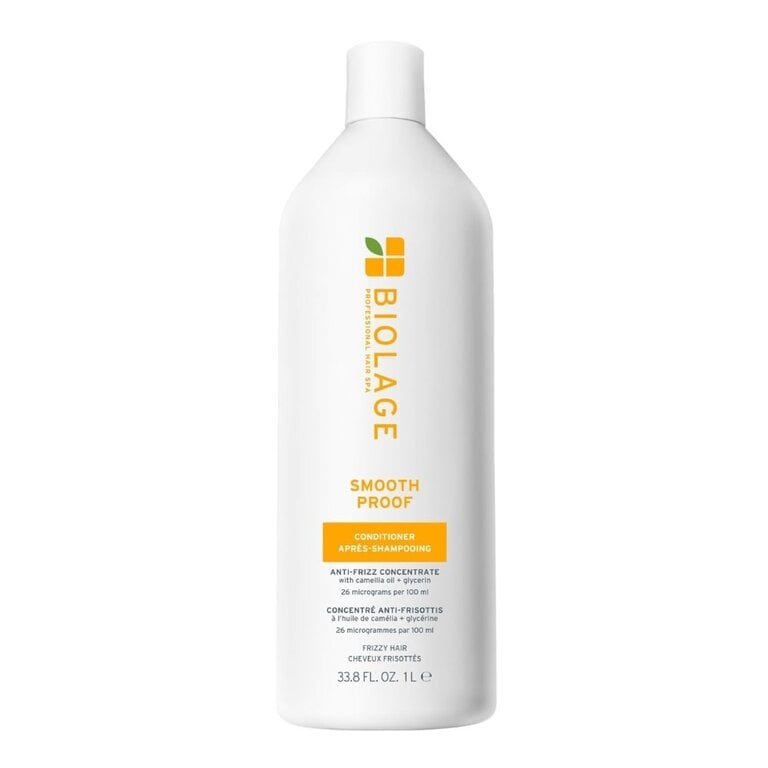 Conçu pour cibler spécifiquement les frisottis, le revitalisant concentré anti-frisottis "Smooth Proof" de Biolage Professional démêle, lisse et discipline instantanément les cheveux crépus. Grâce à sa formule dosée en huile de camélia et en glycérine, cet après-shampoing agit en profondeur pour nourrir la fibre capillaire et créer une barrière protectrice contre l'humidité. L'huile de camélia apporte une douceur exceptionnelle et aide à sceller les écailles du cheveu, tandis que la glycérine assure une hydratation durable, empêchant l'apparition des frisottis. Vos cheveux sont désormais disciplinés, plus souples et plus faciles à coiffer.