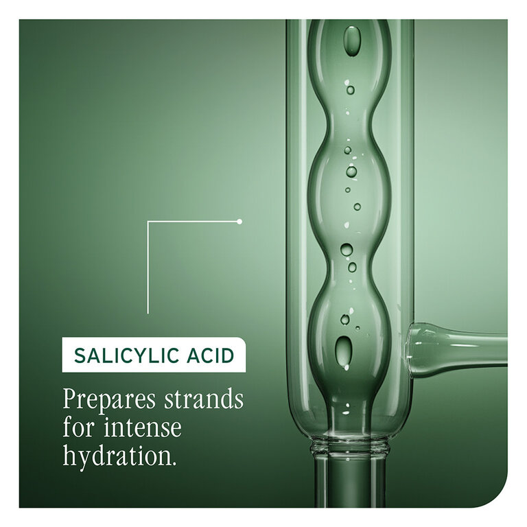 • Acide salicylique : Grâce à ses propriétés nettoyantes puissantes, l'acide salicylique débarrasse les cheveux de toute impureté. Cette action purifiante crée une toile vierge, permettant une pénétration optimale des agents hydratants et assurant une légèreté préservée.