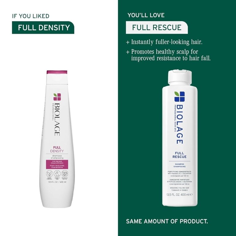 Ciblez la chute des cheveux due à la casse avec le shampoing concentré fortifiant "Full Rescue" de Biolage Professional. Enrichie en huile de romarin et en niacinamide, sa formule microdosée et surpuissante offre un équilibre parfait entre la résilience des cheveux et la protection du cuir chevelu.