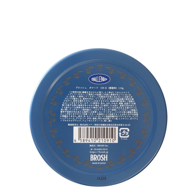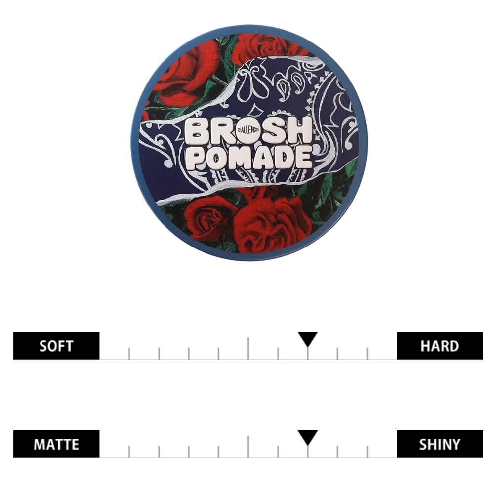 Née de la collaboration entre Brosh et la marque japonaise Challenger, cette pommade associe performance professionnelle et univers visuel inspiré de l’American Garage. Cette édition met en avant un parfum de rose raffiné accompagné d’un motif bandana emblématique, signature de Challenger. Sa texture offre une tenue forte, identique à celle de la Brosh Original, tout en restant hautement maniable, permettant de structurer facilement la coiffure sans rigidité ni inconfort.