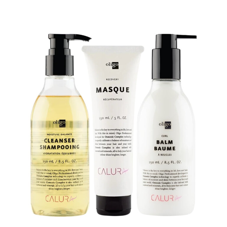Définissez chaque courbe avec le trio les essentiels pour les boucles "Curls Essentials" de Calura par Oligo Professionnel. Cette routine experte apporte une hydratation équilibrée et cible les zones sèches, assurant des boucles souples et parfaitement dessinées. Elle favorise des boucles magnifiquement rebondies, sans frisottis, avec un mouvement naturel qui captive le regard.