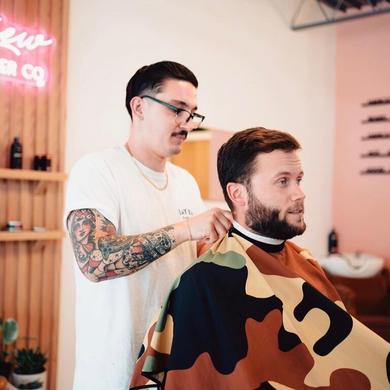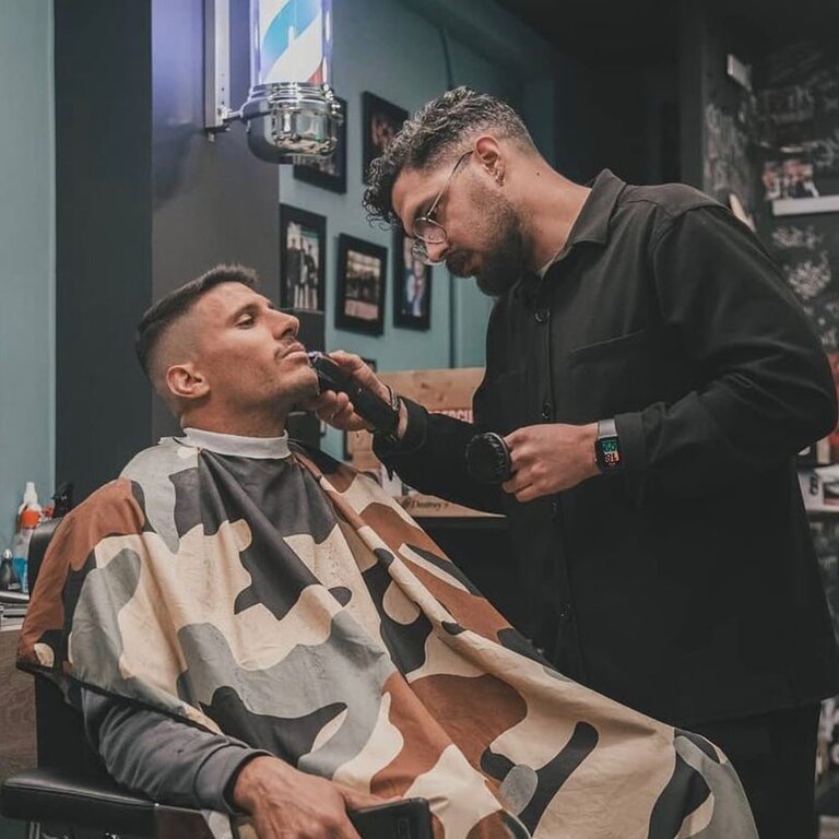 La Cape de barbier professionnel "Camo" de Cape Gang, est conçue en utilisant des matériaux sur mesure de haute qualité et une impression par sublimation.