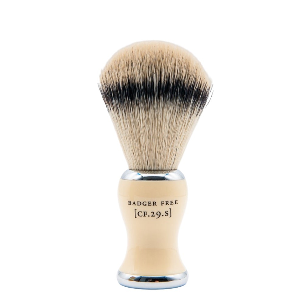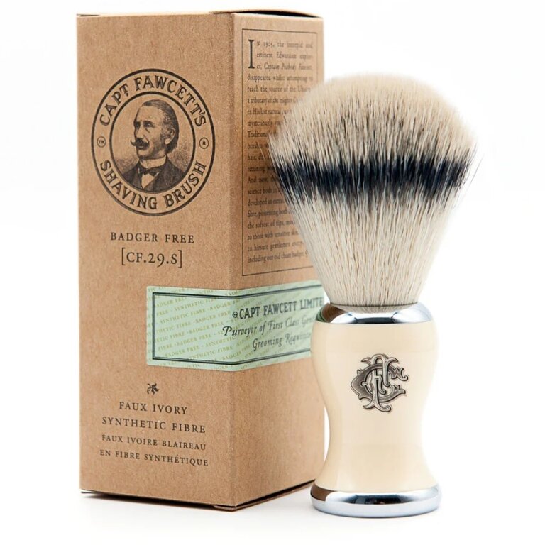 Le blaireau "Faux Badger" modèle CF.29.S de Captain Fawcett est conçu avec des fibres synthétiques haut de gamme spécialement développées pour imiter les performances du poil de blaireau traditionnel. Douces, précises et parfaitement adaptées aux peaux sensibles, ces fibres offrent une excellente rétention d’eau et génèrent une mousse dense, riche et onctueuse en quelques secondes. Avec son nœud de 24 mm, ce blaireau propose un équilibre parfait entre contrôle, confort et efficacité, idéal pour une utilisation quotidienne ou professionnelle.