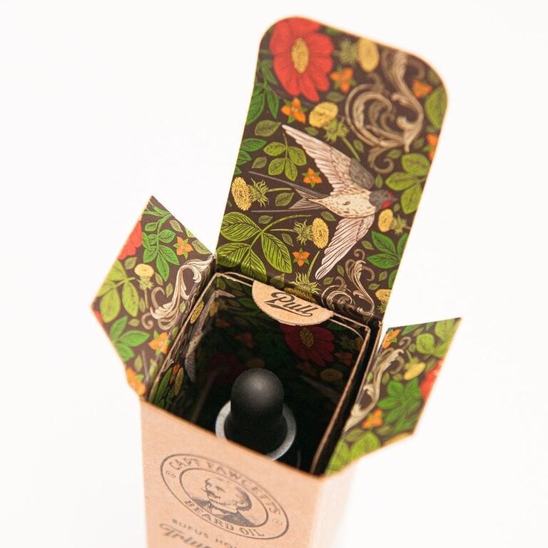 La collaboration triomphale du capitaine Fawcett avec l'acteur, comédien et bon œuf à tous les niveaux Rufus Hound a donné lieu à une huile à barbe plutôt splendide. Un parfum délicieux qui rappelle quelque peu les douces journées du printemps ; des stimuli olfactifs ruraux ont été récoltés en conduisant sa moto bien-aimée à travers la campagne verte et agréable de l'Angleterre.
