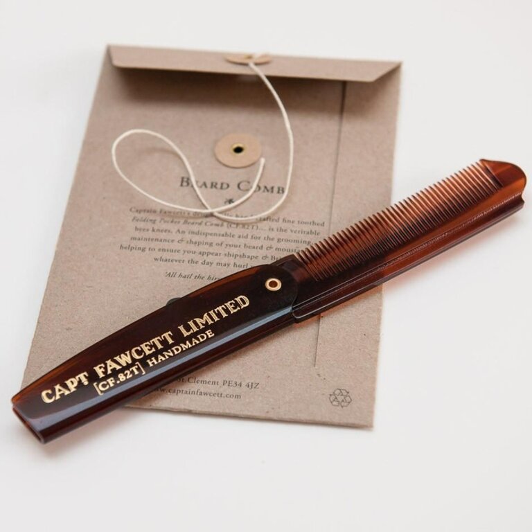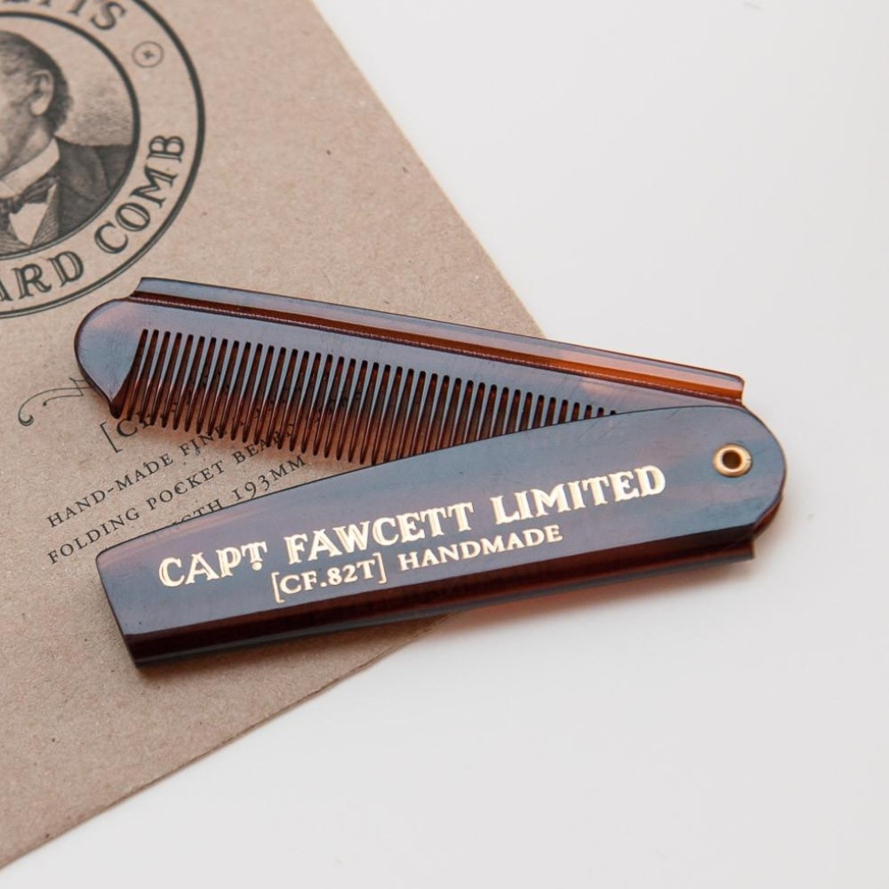 Le peigne à barbe de poche pliable de Capitaine Fawcett est minutieusement fabriqué à la main. Le CF.82T est une aide indispensable pour coiffer, entretenir et mettre en forme votre barbe et votre moustache, vous aidant à atteindre le look bateau et à la mode Bristol quel que soit le jour qui vous attend. Tous saluent l'hirsute, C. Fawcett