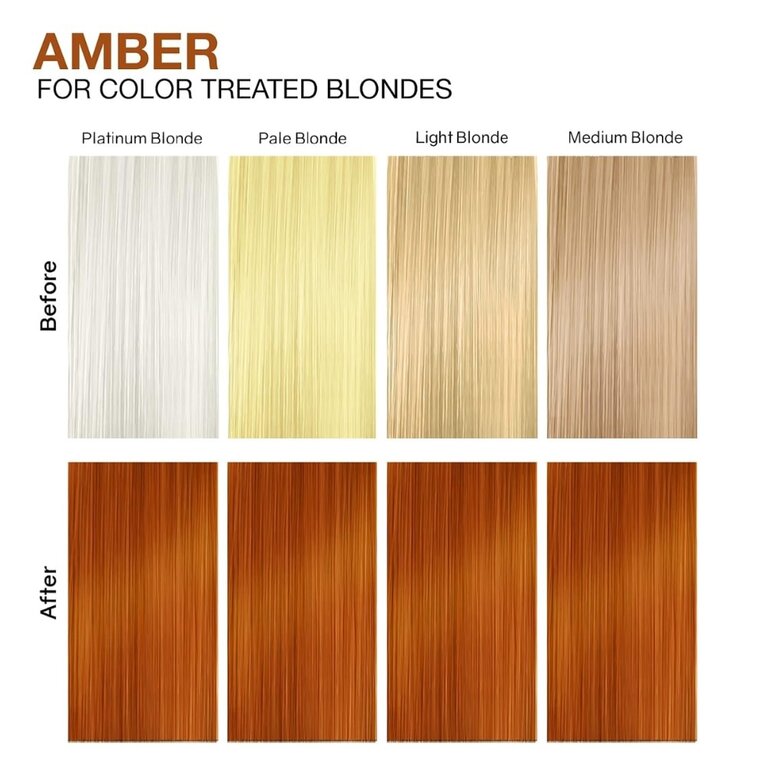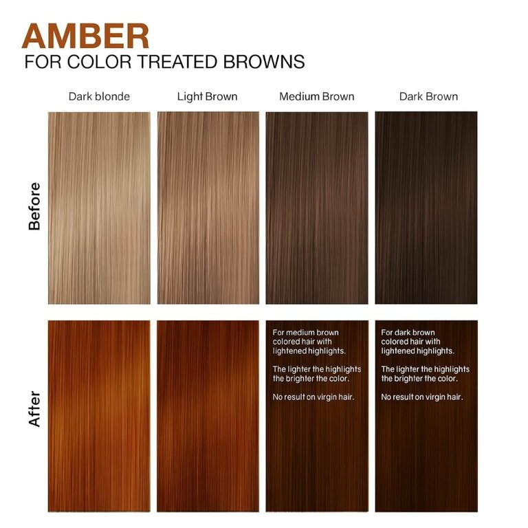 - Ambre donne des résultats plus éclatants sur les cheveux bruns avec des mèches éclaircies.