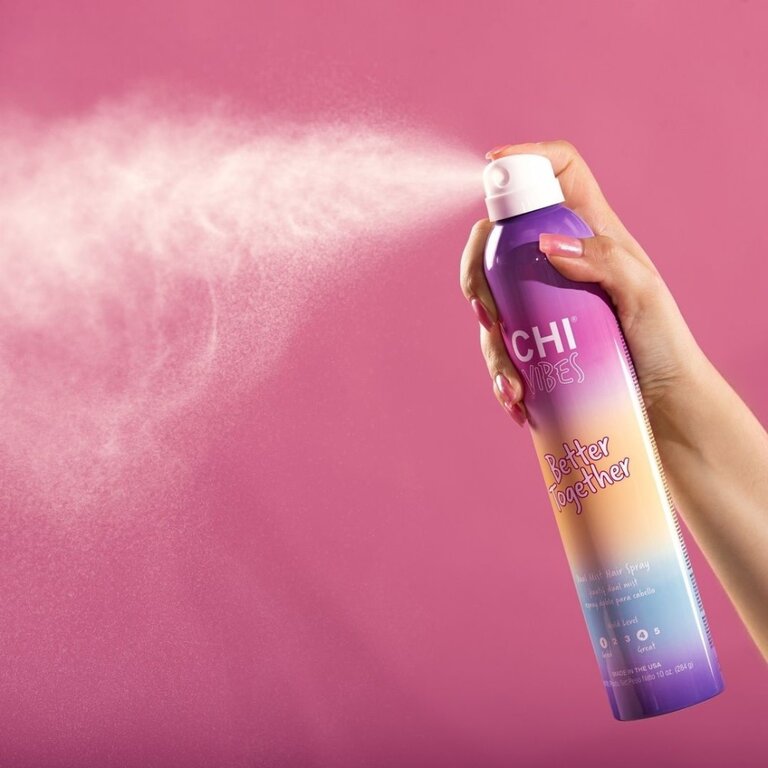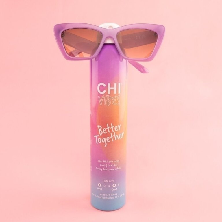 Découvrez la polyvalence du vaporisateur de fixation capillaire à double bruine "Better Together" de CHI Vibes, ce spray réglable unique vous offre la possibilité de réaliser de multiples coiffures.