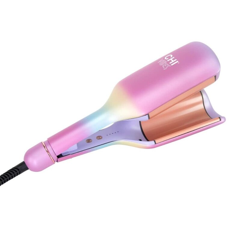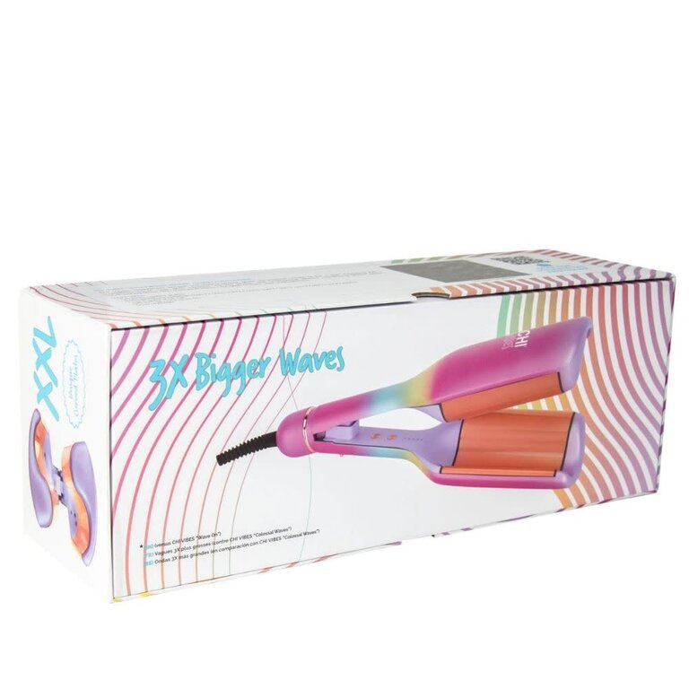 Le fer à onduler XXL multifonctionnel "Hollywood Waver" avec plaques en céramique de 3.60" de CHI Vibes donne des ondulations volumineuses avec une brillance et un rebond durables. Ses plaques en céramique recouvertes d'or rose créent à la fois des vagues profondes (mermaid look) et des boucles glamour lâches dans un seul outil. En changeant simplement les techniques de coiffage, les cheveux glissent facilement sur une surface lisse pour le bouclage tandis que les plaques incurvées profondes permettent de créer facilement une texture ondulée. Les cheveux sont sans frisottis et soyeux avec un volume XXL et une brillance ultime, sans être exposés à une chaleur élevée inutile.