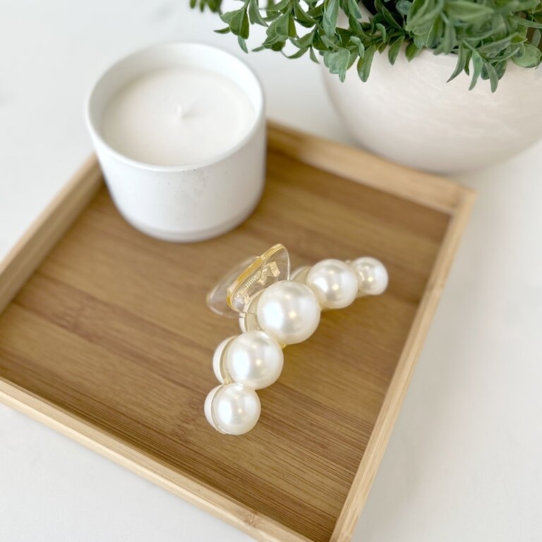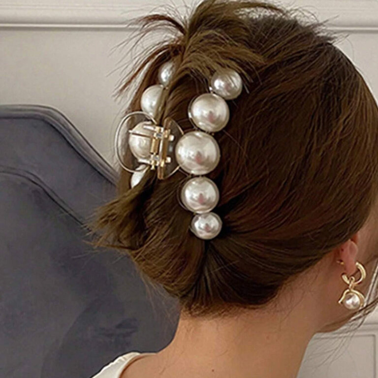 Ajoutez une touche de glam à votre coiffure avec la pince à cheveux translucide en forme de lune garnie de 5 grosses perles. Conception robuste, 12 dents, longueur de 10cm / 3.75po.