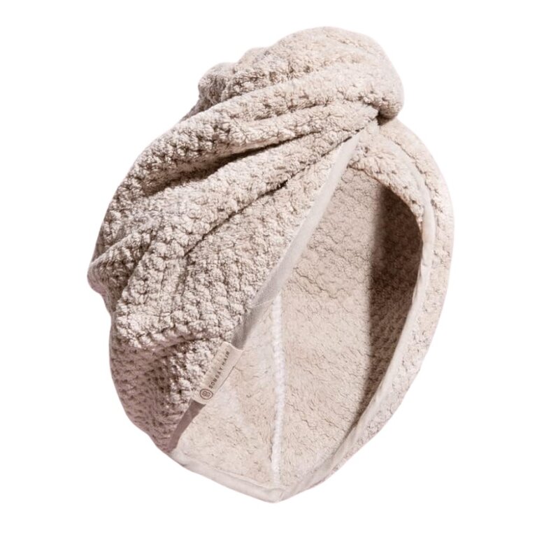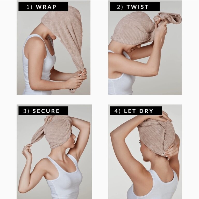 Réduisez de moitié le temps de séchage en enroulant vos cheveux dès la sortie de la douche. Le tissu doux et moelleux aide à sécher vos cheveux en douceur, contrairement aux serviettes traditionnelles qui créent des textures rugueuses.