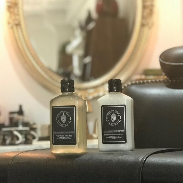 Le revitalisant fortifiant "Fortifying Conditioner" de Crown Shaving Co. est un soin capillaire haut de gamme formulé pour hydrater, assouplir et renforcer les cheveux tout en améliorant leur douceur naturelle. Sa texture riche et crémeuse glisse facilement sur les cheveux, les laissant plus souples, plus lisses et sans électricité statique grâce à un mélange performant d’ingrédients comme le beurre de karité, l’huile de jojoba et l’huile de bois de cèdre.