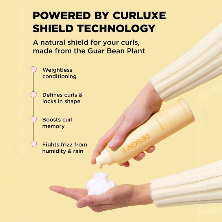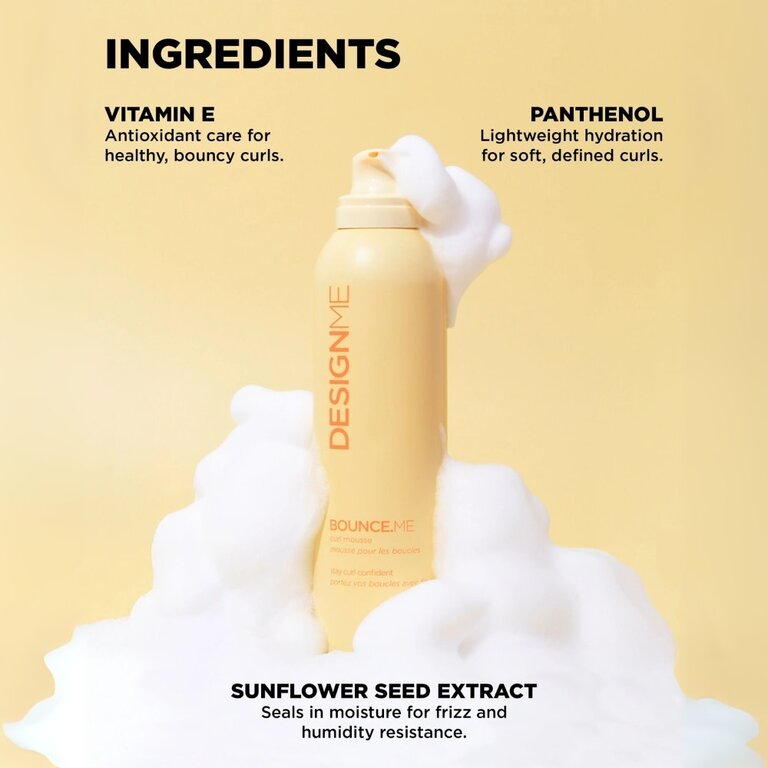 Avec la mousse pour les boucles "Bounce.Me" par DesignMe, révélez le potentiel de vos cheveux. Sa formule offre une hydratation essentielle, une définition précise et un contrôle infaillible des frisottis pendant 48 heures, sans jamais alourdir.
