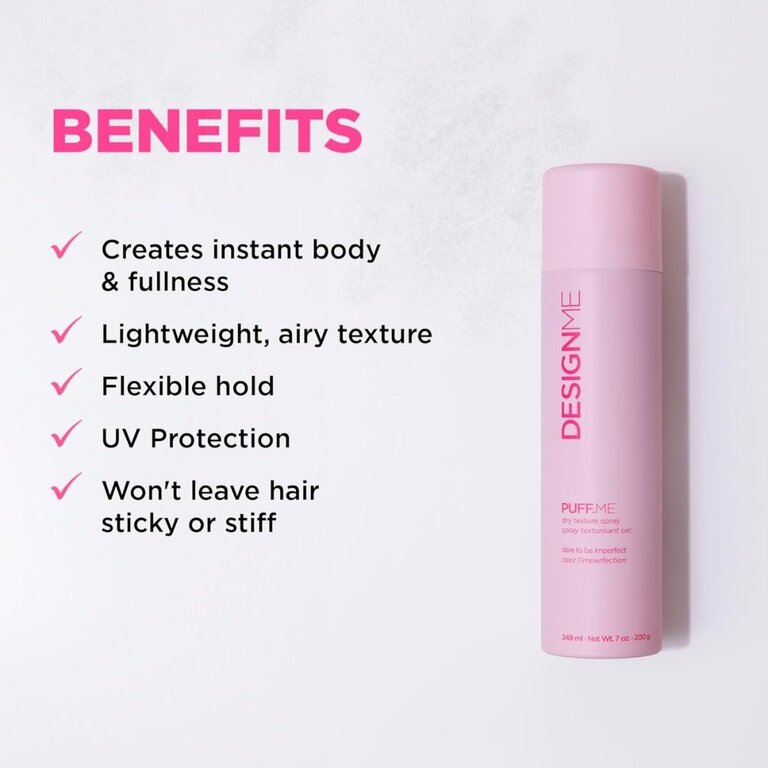 La vie n'est pas parfaite mais vos cheveux sont sur le point de l'être! Le spray texturant sec Puff.ME offre un volume insouciant étonnant et une texture vivante, sans effet collant ni lourdeur.