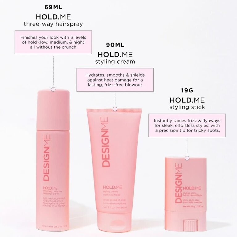 Coiffez-vous comme une pro, tous les jours, grâce au trio "Wait For Me" de Design.Me. Il comprend le bâton de coiffage pour dompter les frisottis et les mèches rebelles, une crème coiffante pour lisser et protéger, ainsi qu'un fixatif polyvalent qui s'adapte à la tenue que vous désirez. Obtenez une coiffure impeccable et maîtrisée, sans effort, grâce à cette collection incontournable.