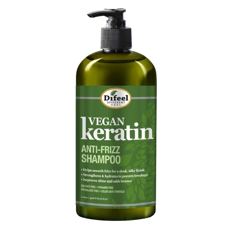 Le shampoing anti-frisottis "Vegan Keratin" de Difeel lisse, fortifie et fait briller les cheveux tout en domptant les frisottis. Sa formule à base de plantes et enrichie en kératine végane renforce la fibre capillaire, facilite le coiffage et protège contre la casse, pour des cheveux doux, souples et visiblement plus sains. Adapté aux cheveux frisés, secs, colorés ou abîmés, il hydrate tout en nettoyant en douceur. Sans parabènes ni phtalates, 100 % végan et sans cruauté, ce shampoing offre un soin efficace et respectueux de l’environnement.