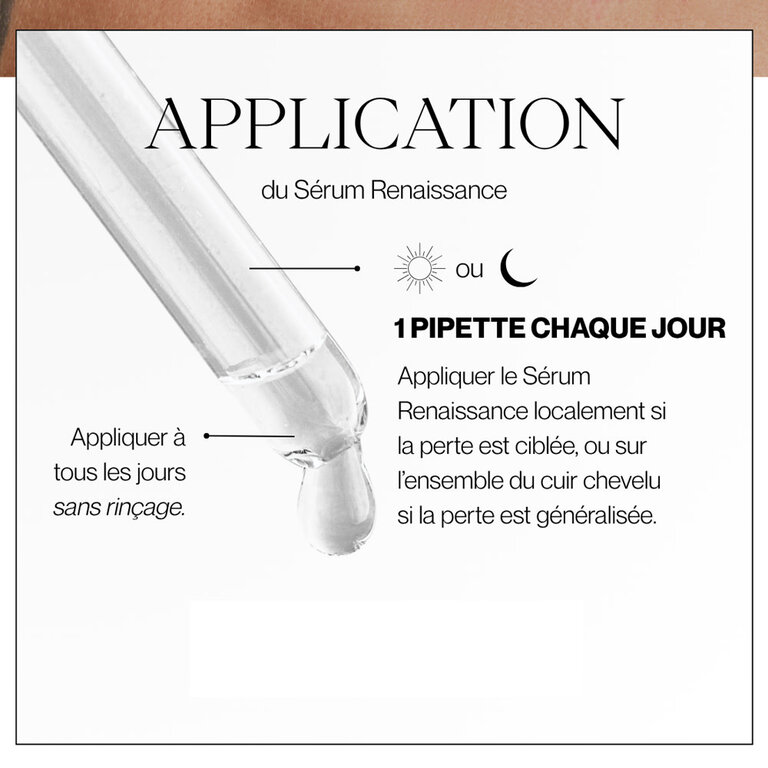 Appliquer 1 pipette chaque jour sur le cuir chevelu propre et sec ou légèrement humide.