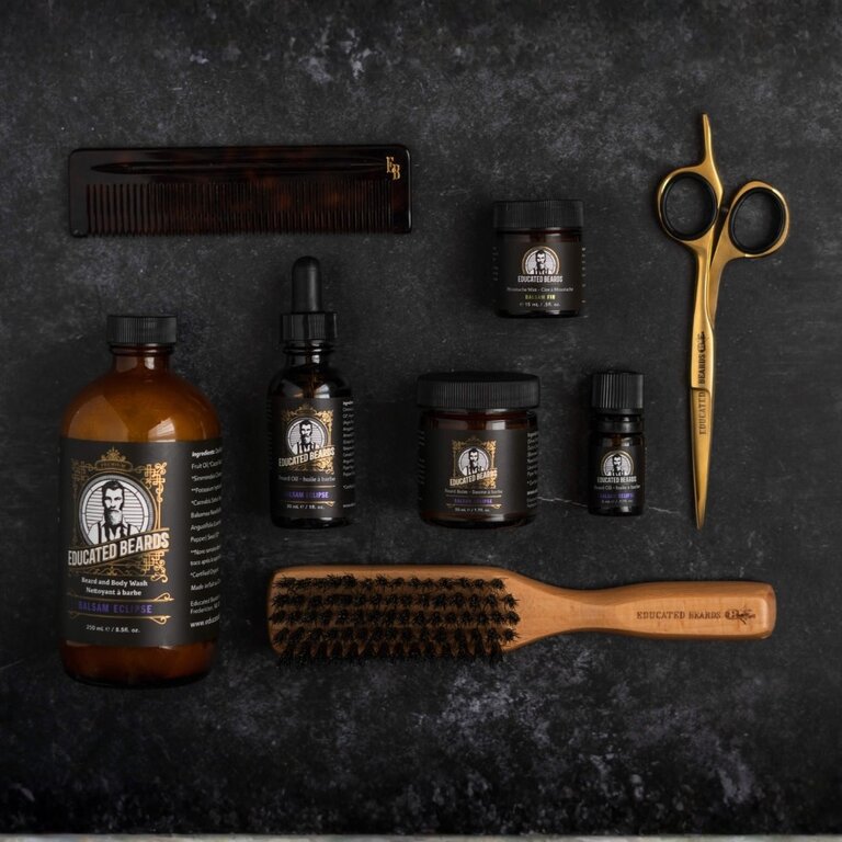 Soyez le patron de votre barbe avec le baume à barbe "Balsam Eclipse" de Educated Beards. Utilisez ce baume pour apprivoiser et dresser même la barbe la plus rebelle. Fournit une tenue confortable et donne du poids aux moustaches voyous. Il scelle la cuticule des cheveux et reconstitue les huiles perdues.