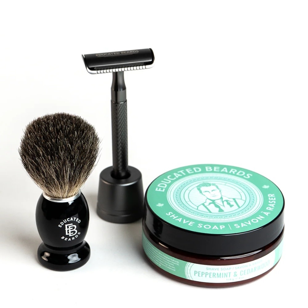 L'ensemble de rasage "Peppermint Cedarwood Shave Kit" de Educated Beards a été pensé pour le rasage conscient. Il transforme votre rituel matinal en une expérience rafraîchissante, précise et agréable. Ce coffret de 5 pièces offre une solution complète pour un rasage de qualité supérieure, tout en respectant la peau et l’environnement.