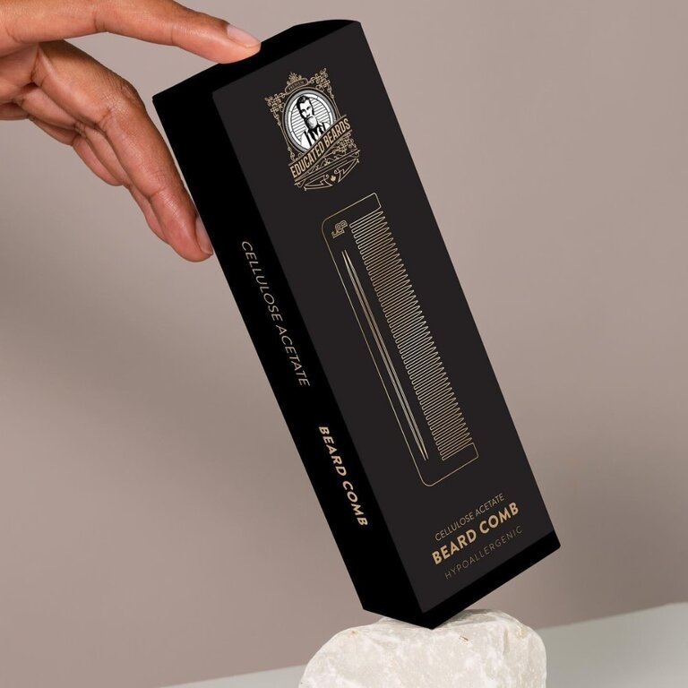 Le peigne à barbe Educated Beards est l’outil parfait pour démêler, structurer et entretenir votre barbe avec douceur et précision. Fabriqué à partir d’acétate de cellulose, un matériau végétal dérivé du coton et du bois, il offre une finition lisse et anti-statique qui glisse sans accrocs dans les poils du visage.