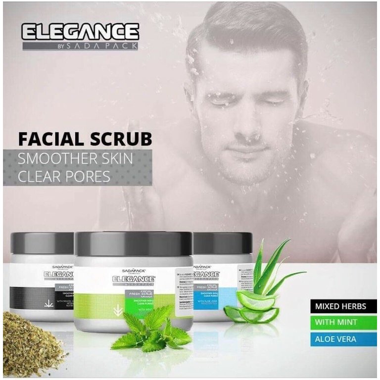 L'exfoliant facial "Facial Fresh Scrub" Elegance est naturelle est formulé pour éliminer en douceur les traces de saleté, l'excès de sébum et les points noirs.