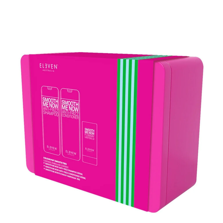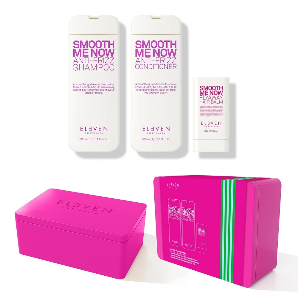 Contrôlez les frisottis et les mèches rebelles avec le trio lissant "Smooth Me Now" d'Eleven Australia, une routine complète conçue pour les cheveux épais et indisciplinés. Composé d'un shampoing, d'un revitalisant et d'un baume de finition, cet ensemble anti-frisottis riche en nutriment combat la sécheresse et les dommages pour lisser, renforcer et hydrater la fibre capillaire.