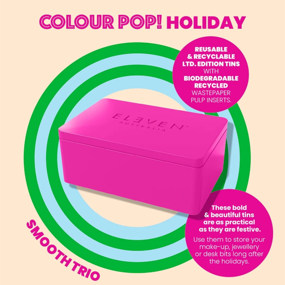Présenté dans une adorable boîte en métal colorée et entièrement réutilisable, ce trio est le cadeau parfait. Cette conception intelligente permet de ranger du maquillage, des bijoux ou des fournitures de bureau bien après la période des fêtes. L'élégance se joint au développement durable dans cet emballage attrayant.