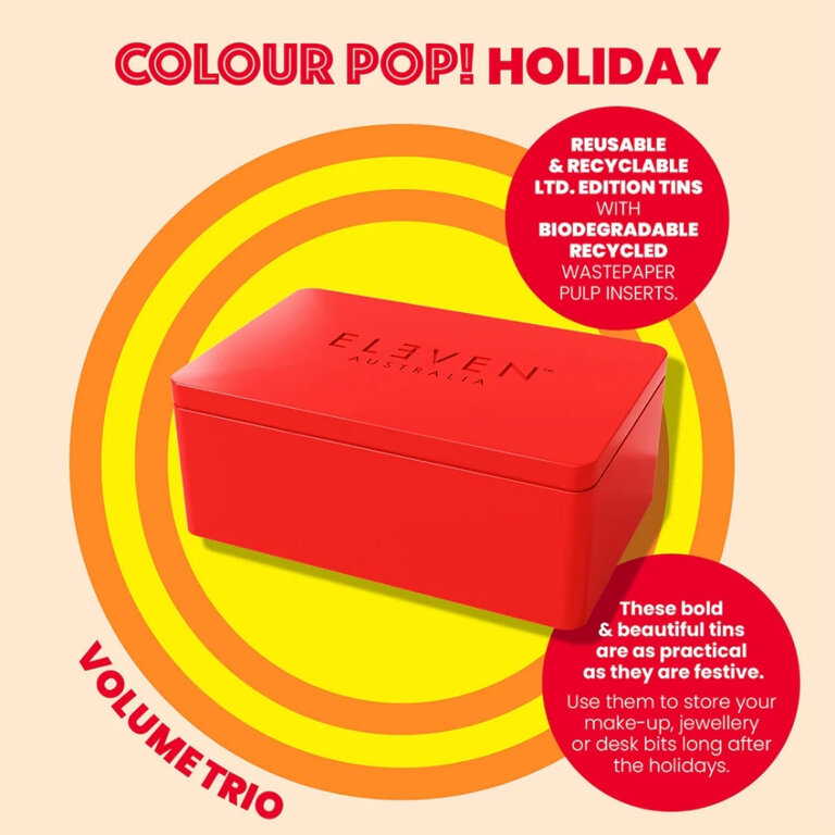 Présenté dans une adorable boîte en métal colorée et entièrement réutilisable, ce trio est le cadeau parfait. Cette conception intelligente permet de ranger du maquillage, des bijoux ou des fournitures de bureau bien après la période des fêtes. L'élégance se joint au développement durable dans cet emballage attrayant.