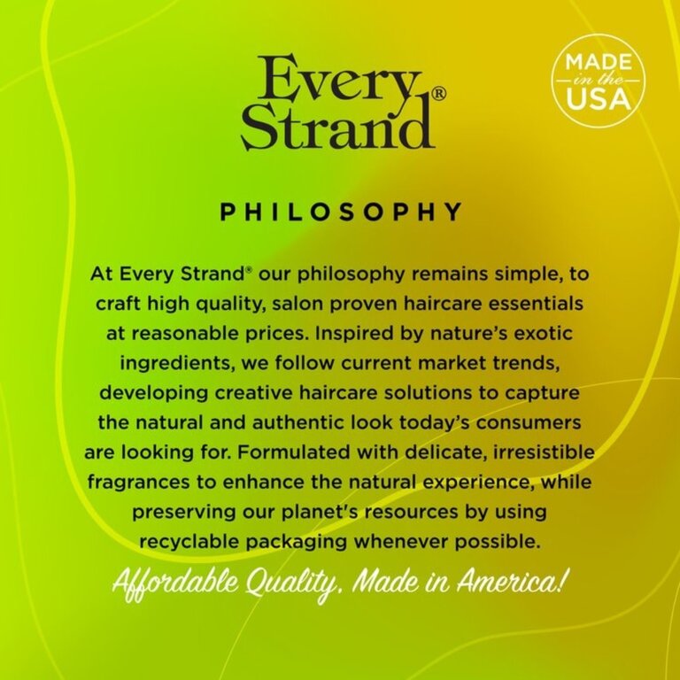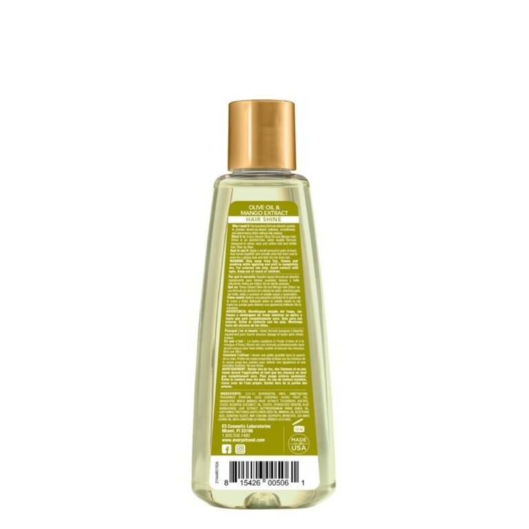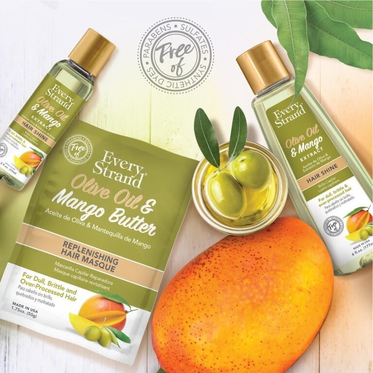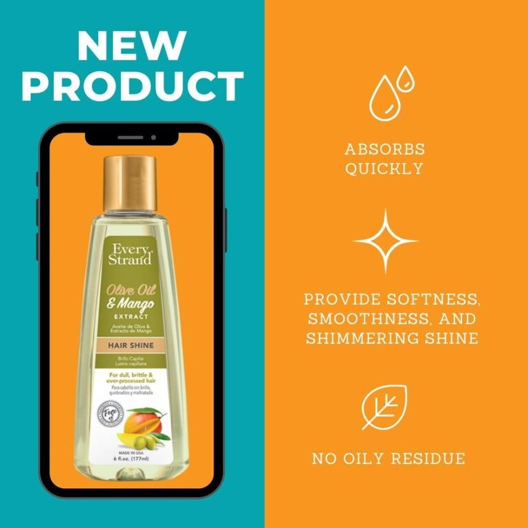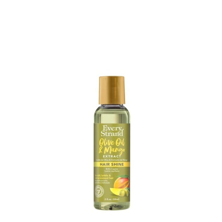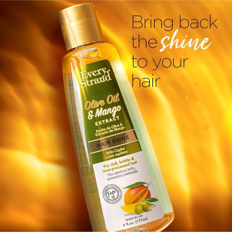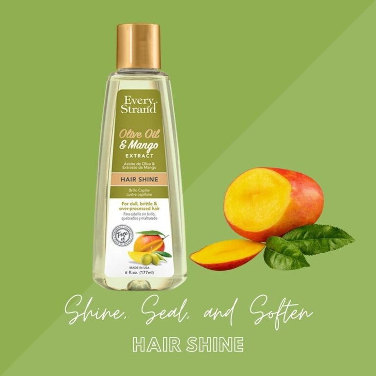 Le lustre capillaire "Hair Shine" à l’huile d’olive et extrait de mangue de Every Strand est un soin sans rinçage destiné à apporter brillance, douceur et éclat aux cheveux ternes ou secs. Sa formule légère et sans alcool aide à lisser la cuticule du cheveu, ce qui améliore la réflexion de la lumière et donne un aspect plus lumineux. L’huile d’olive contribue à nourrir et assouplir la fibre capillaire, tandis que l’extrait de mangue apporte une touche de douceur et de souplesse. Il ne laisse pas de résidu gras et convient à un usage quotidien pour parfaire la coiffure et raviver la chevelure.