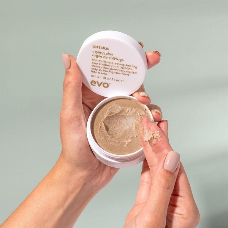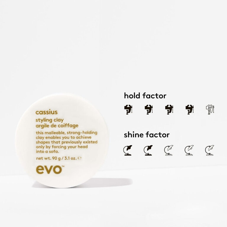 Ancrez le mouvement de vos cheveux épais et rêches grâce à l'argile de coiffage "Cassius" d'Evo, offrant une tenue forte et malléable, avec une texture brute et intense.