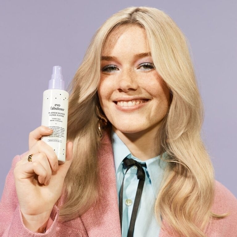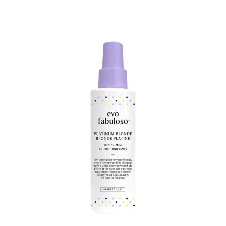 La brume tonifiante Blonde Platine "Platinum Blonde Toning Mist" par Evo Fabuloso est un soin sans rinçage qui tonifie, traite et démêle légèrement les cheveux blonds, tout en les protégeant des rayons UV et de la chaleur des outils chauffants. Sa formule neutralisante et ultra lumineuse permet de mieux entretenir les nuances de cheveux blond clair, grâce à son dosage équilibré de pigments violets. Assez douce pour un usage quotidien, la brume tonifiante peut être utilisée pour rafraîchir rapidement la chevelure, ou pour un conditionnement supplémentaire et des résultats encore plus blonds.